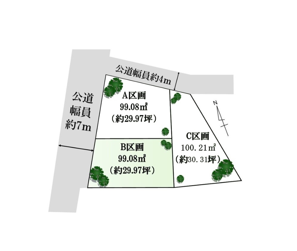 ■全3区画・30坪超のゆとりある敷地。 角地を含む選べる3つの区画。一括購入による広大な邸宅建築もご相談ください。