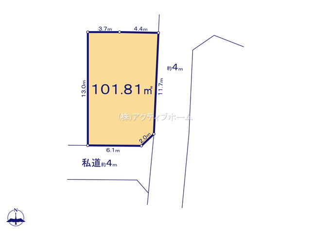 セットバック 不要 道路状況 私道 南 幅員4m 位置指定:無 / 私道 東 幅員4m 位置指定:無